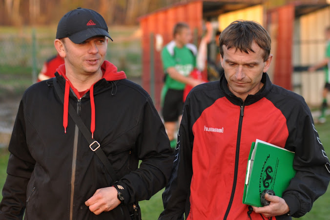 Sławomir Grzesik (po prawej) w towarzystwie trenera Skały Tumlin - Mariusza Ludwinka.